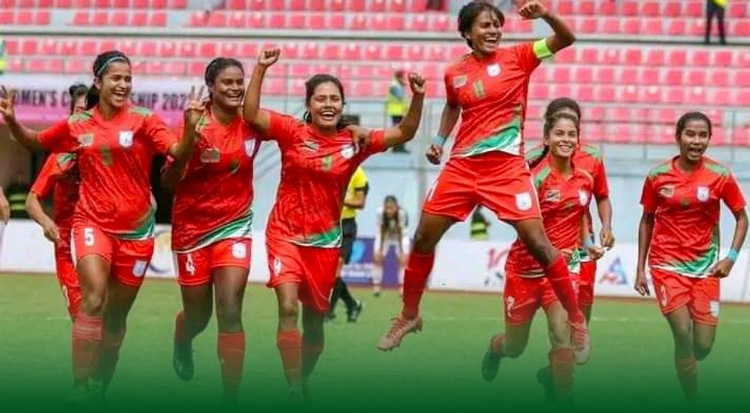 দক্ষিণ এশিয়া নারী ফুটবলে চ্যাম্পিয়ন হয়ে বীর দর্পে দেশে ফিরেছে অধিনায়