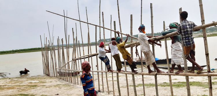 এ বছর (২০২১) যমুনা নদীর মাঝখানে বানতিয়ার, বালিয়াডাঙ্গা ও ঘোরজান গ